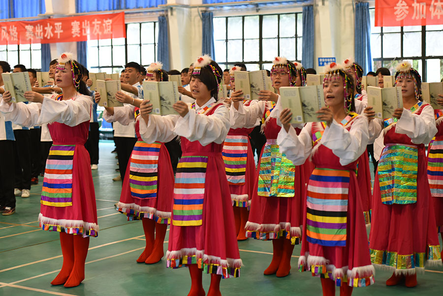 本次汇报表演内容丰富、形式多样,既有传统的军事技能展示,有宏伟嘹亮的军歌,有威武雄壮的军体拳、擒敌拳,也有时代特色鲜明的青春韵律健美操、民族特色鲜明的藏族舞和学生晨读展示,充分展示了学院文化建设成果。