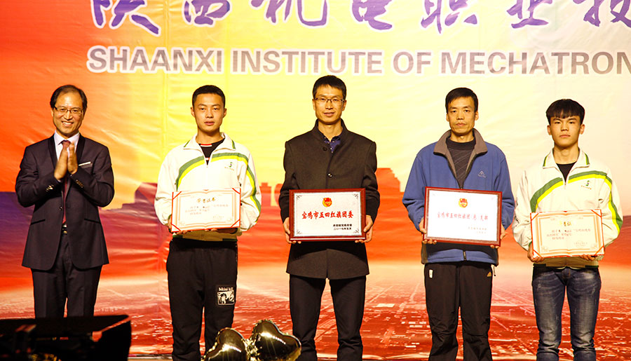 大会先后对宝鸡市五四红旗团委(院团委)、宝鸡市五四红旗团支部(13机电高职1班团支部)、宝鸡市优秀共青团员(王静同学、高伟同学)、2016-2017学年先进班集体及班主任,奖学金获得者、优秀秀学生干部、优秀学生等先进集体和优秀个人进行了表彰。