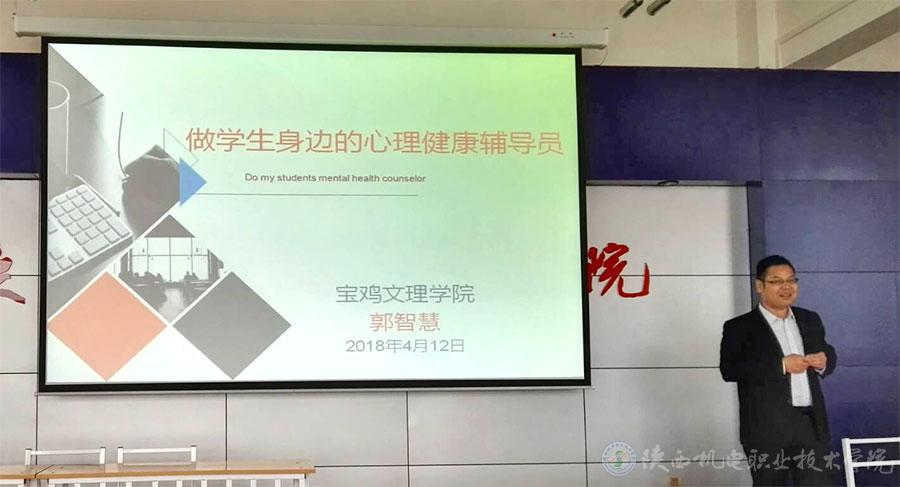 为了更好地给学生提供专业的心理咨询与辅导服务,帮助学生更加健康地学习、生活,学工部于4月12日下午特邀请宝鸡文理学院郭智慧教授,为我院全体辅导员、班主任做了题为《做学生身边的心理健康辅导员》的讲座。