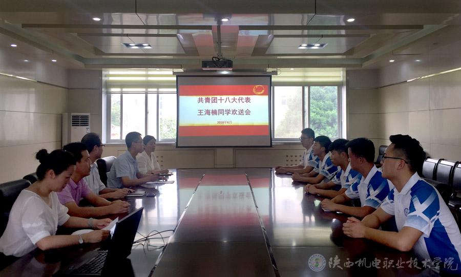 在王海楠同学赴京参加共青团第十八次全国代表大会前,我院团委组织于2018年6月21日,举行了简朴而隆重的欢送会。学院党委书记、院长伊逊智,学工部部长朱云洁,机电工程系主任白娟娟以及学院团委委员、学生代表出席了欢送会,会议由团委书记李明主持。