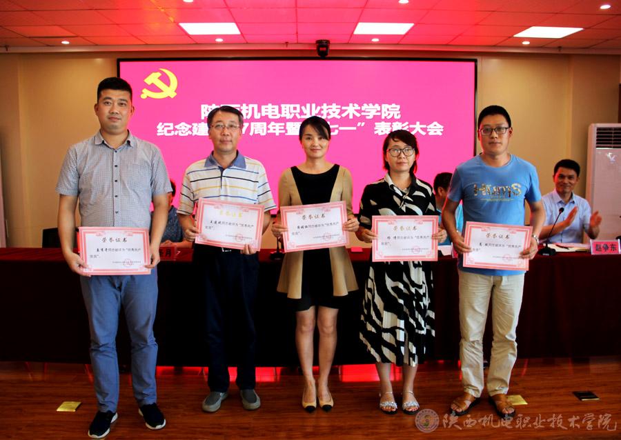 在庄严的国歌声中,表彰大会拉开序幕。学院党委委员、副院长徐圣月宣读了《中共陕西省委高教工委关于表彰全省高校先进基层党组织、优秀共产党员和优秀党务工作者的决定》。买球赛的app官网机电工程系党支部获得全省高校先进基层党组织称号,买球赛的app官网党委宣传部部长、工会常务副主席李明获得全省高校优秀共产党员称号,买球赛的app官网党委委员、组织部部长、党政办主任、行政党支部书记赵争东获得全省高校优秀党务工作者称号。受到学院党委的表彰。