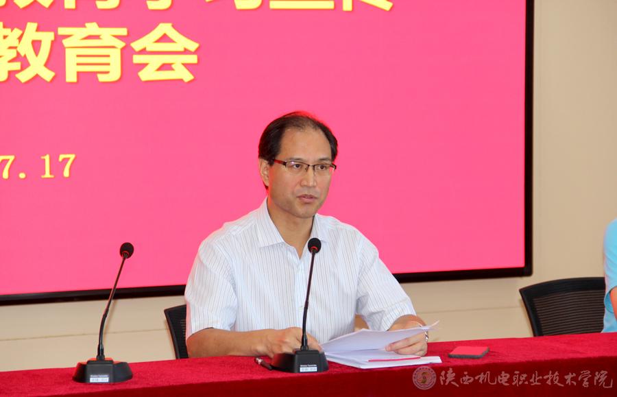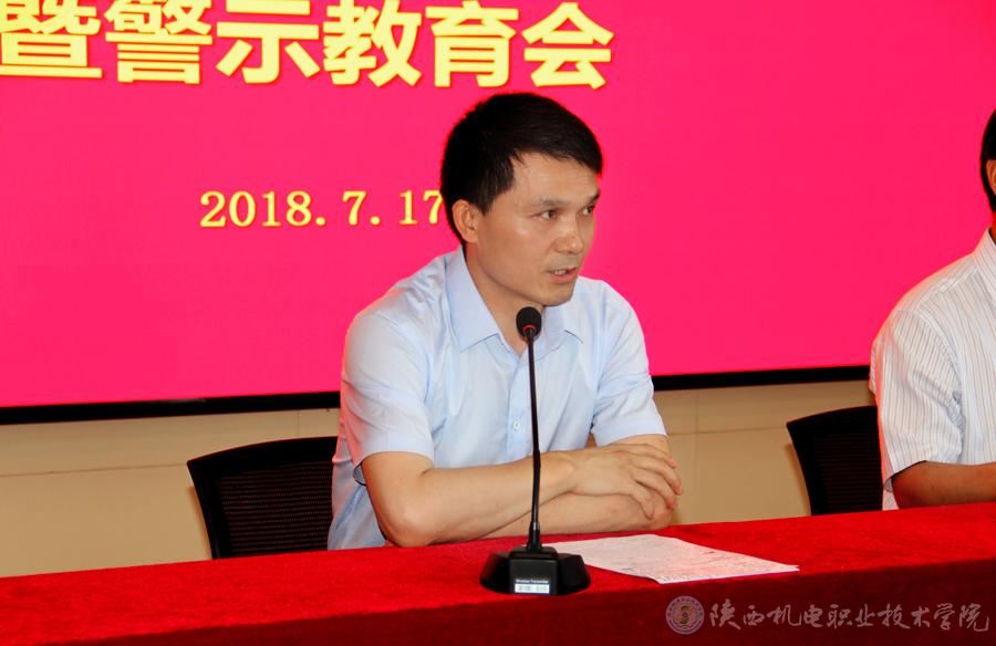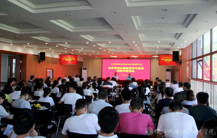 按照《中共陕西省委高教工委关于在高校开展纪律教育学习宣传活动的通知》要求,陕西机电职院党委于7月17日在汽车机电大楼四楼视频会议室召开全体党员纪律教育学习宣传暨警示教育大会。学院领导党委书记伊逊智,党委副书记、纪委书记邓新治,党委委员以及学院纪委监察、统战部、宣传部等部门负责人,学院全体教职工党员共计100人参加了会议。会议由邓新治主持。