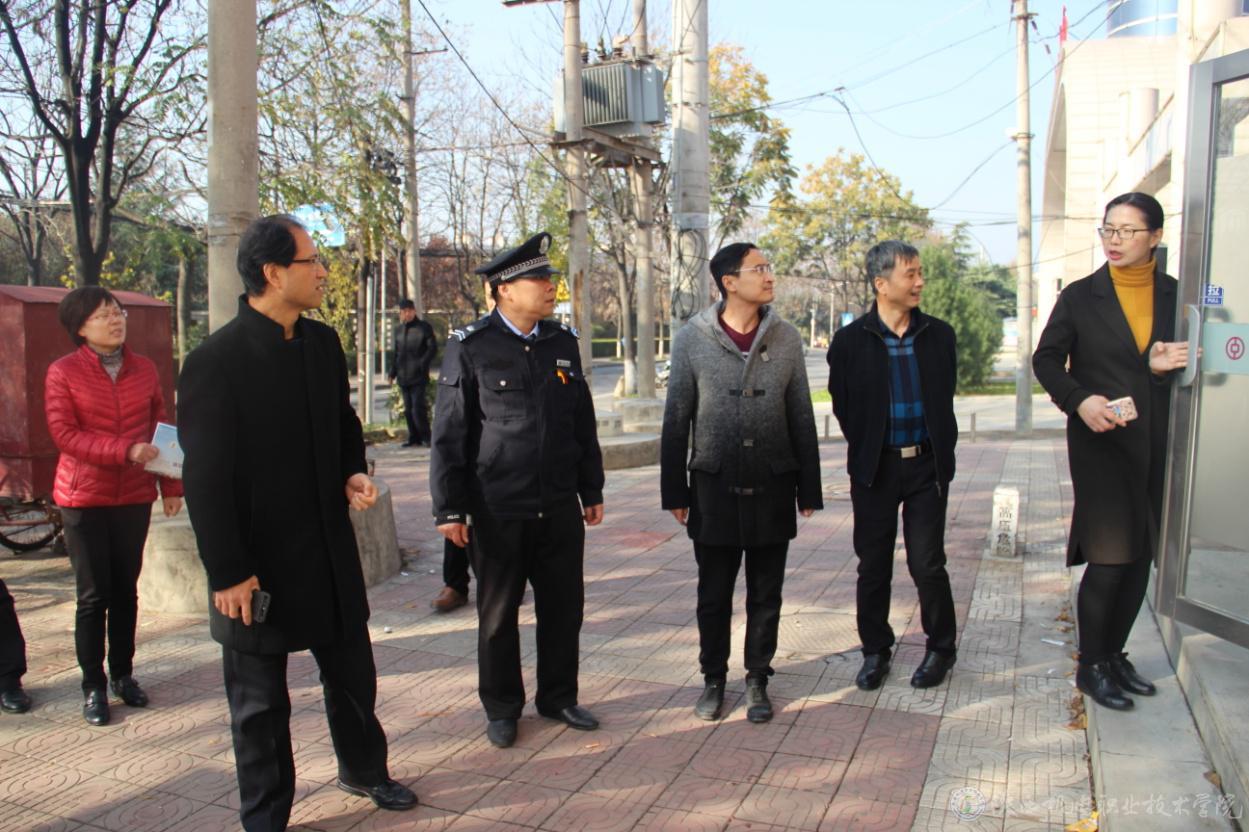 2018年11月8日,学院党委书记伊逊智带队,副院长张新堂、副院长张琴及保卫处、学生处、后勤保障处、基建处等部门负责人随行,对校园周边进行安全排查。