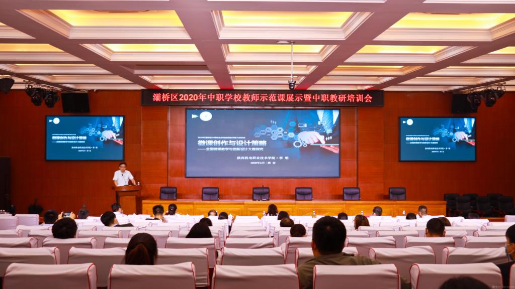 2020年6月16日,西安市灞桥区“2020年中职学校教师示范课展示暨中职教师培训研讨会”在西安铁路职业学校隆重召开。买球赛的app官网作为高职院校中的优秀代表,受灞桥区教育局邀请,学院委派,我院基础部英语教研室主任、名师工作室主持人李明副教授参加了此次研讨会,为大会作题为《微课创作与设计策略》的专题报告。会议由西安市灞桥区教育局主办、灞桥区教师进修学校承办、西安铁路职业学校协办,来自全区近70名教师参加了会议。