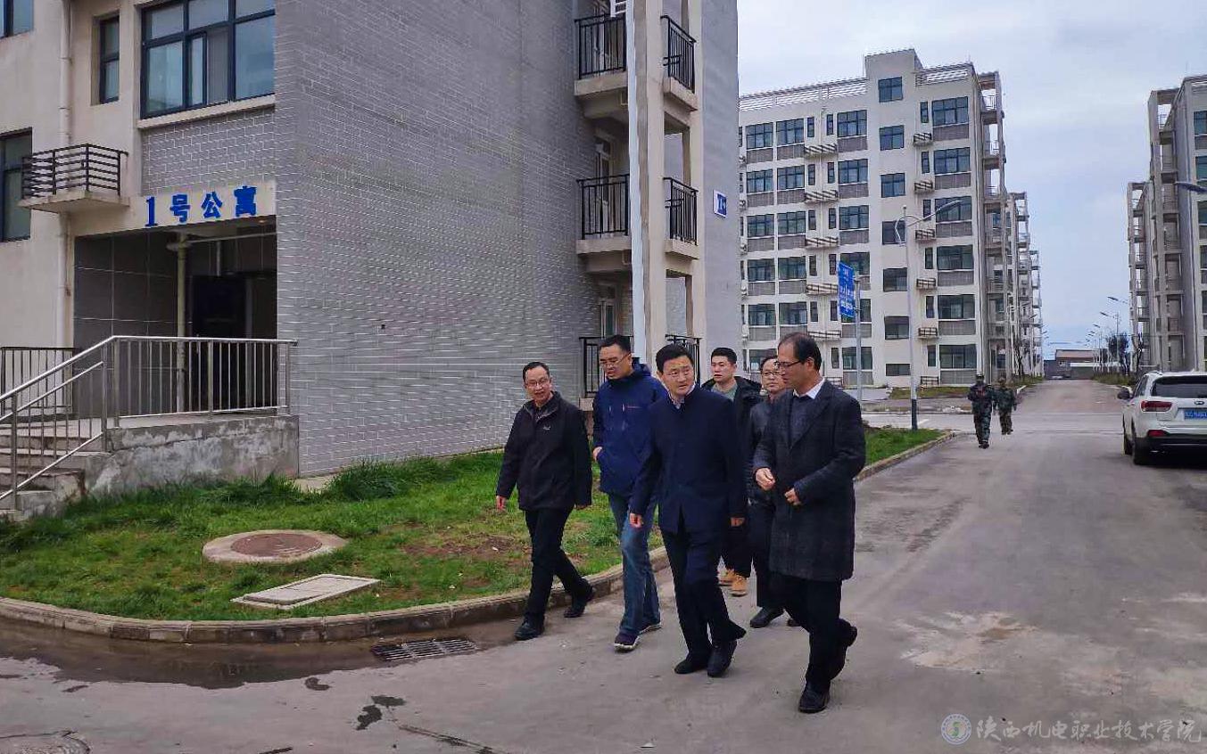 10月14日,宝鸡市金台区委书记、蟠龙新区党工委书记宁怀彬,蟠龙新区管委会副主任张红军、容林文一行视察我院蟠龙新校区,学院党委书记伊逊智,党委副书记、院长向纪明及发展规划处等相关部门负责人陪同考察。
