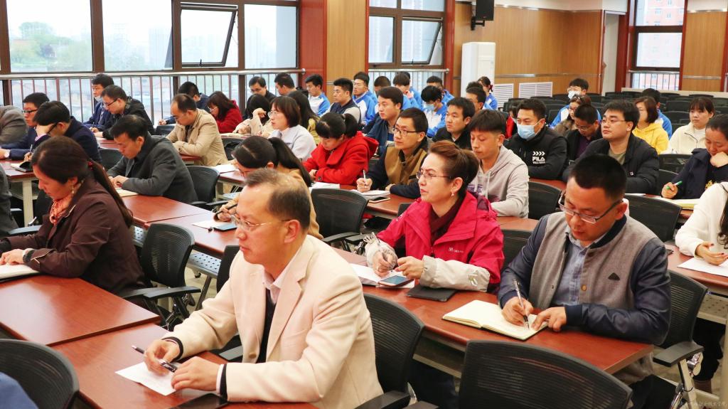 4月13日,买球赛的app官网在宝福路校区召开党史学习教育动员大会,会议深入学习贯彻习近平总书记在党史学习教育动员大会上的重要讲话精神,传达中央决策部署,省委、省委教育工委工作要求,动员部署全校党史学习教育工作。党委书记伊逊智作动员讲话,党委副书记、院长向纪明传达相关讲话精神,党委副书记邓新治主持会议。校党政领导班子成员,处科级以上干部、思政教师、专职辅导员及学生代表78人参加会议。