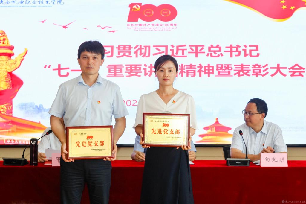 邓新治宣读《关于庆祝建党100周年暨表彰“先进党支部”“优秀共产党员”“优秀党务工作者”的决定》并为获奖集体和个人颁奖。