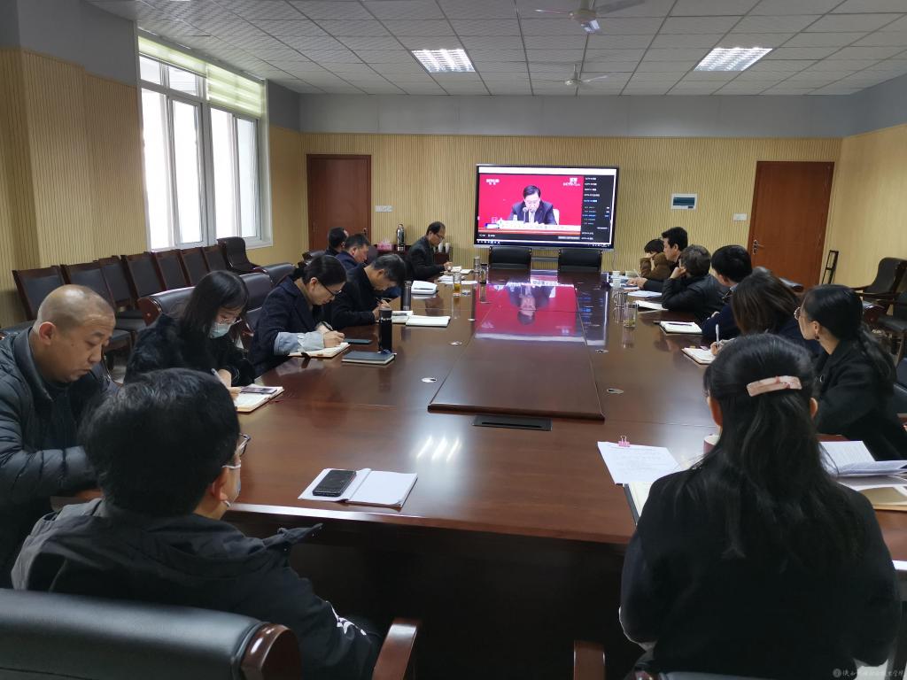 上午10时,学校党委理论学习中心组(扩大)——党政办、党委组织部在蟠龙校区图书馆二楼会议室集中收看了新闻发布会。