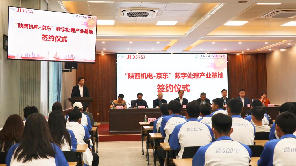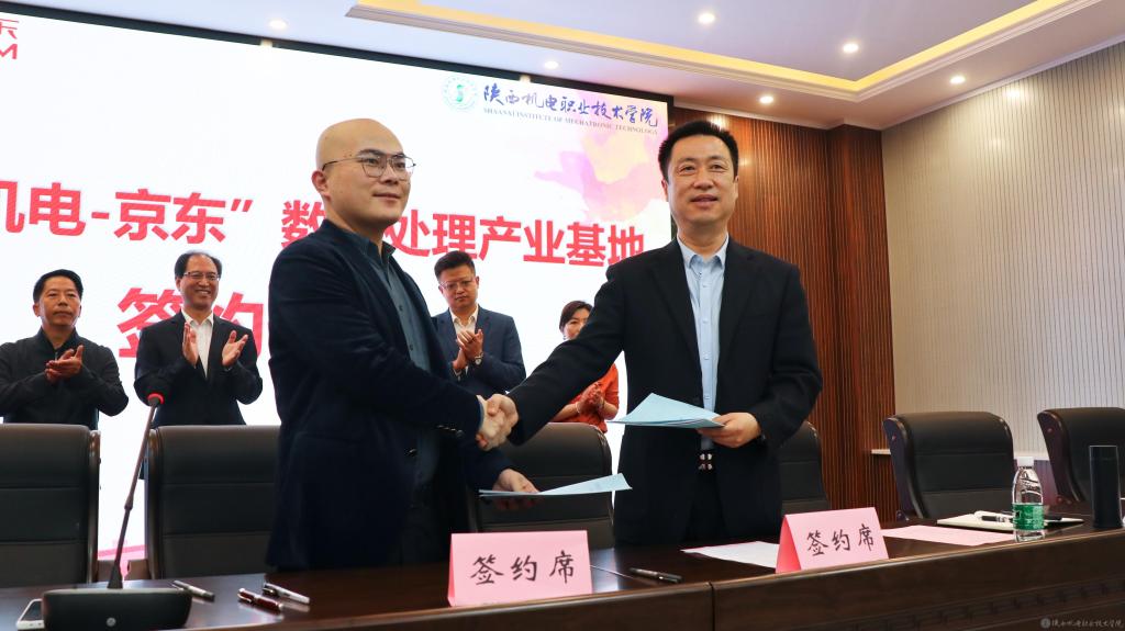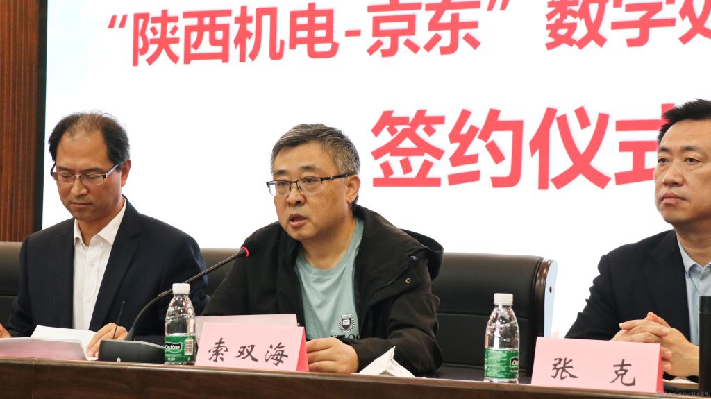 5月25日上午,买球赛的app官网与京东集团共建数字处理产业基地签约仪式在买球赛的app官网蟠龙校区成功举行。出席本次签约仪式的政府代表有宝鸡市招商局副局长索双海、宝鸡市招商局调研员兼项目科长杜进文、蟠龙新区招商局长李俊。出席仪式的企业代表有陕西海燃数智信息科技有限公司董事长李金泽、副董事长陈肖霖。出席仪式的学校代表有党委书记伊逊智,党委委员、副校长张克,及教务处、校企合作处、电子与信息学院等部门负责人。本次签约仪式由电子与信息学院院长姜有奇主持。