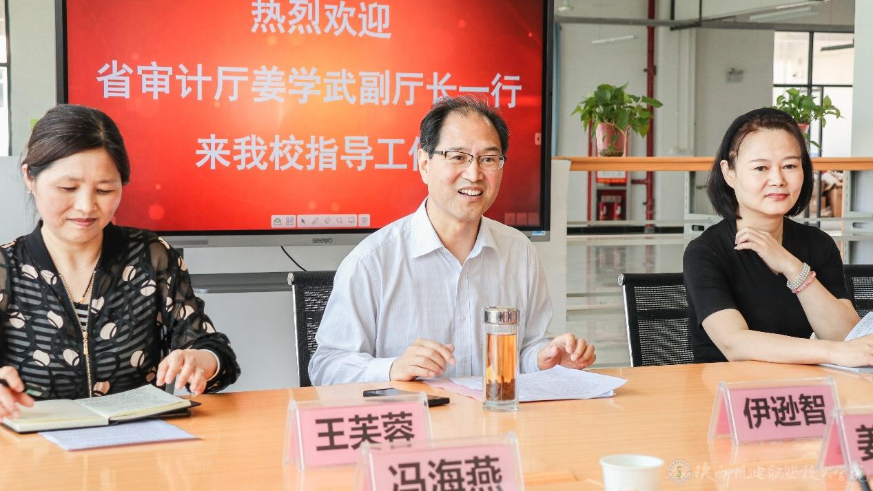 6月1日,省审计厅副厅长姜学武一行莅临我校检查指导内部审计工作,在蟠龙校区图书楼二楼召开内部审计工作座谈会。宝鸡市审计局副局长李虎勤参加会议,学校党委书记伊逊智致欢迎词。会议由省审计厅内部审计指导监督处冯海燕处长主持。