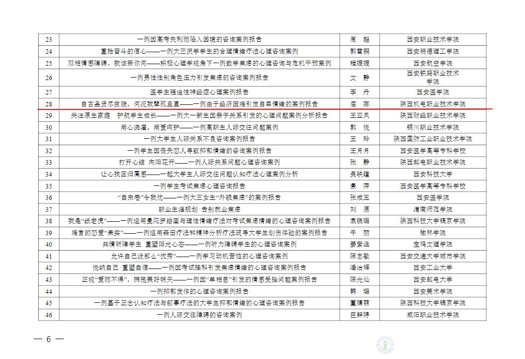 热烈祝贺陕机电青年教师及学生在陕西省第七届高校“阳光护航”心理育人宣传季省级有关活动中获得优异成绩。