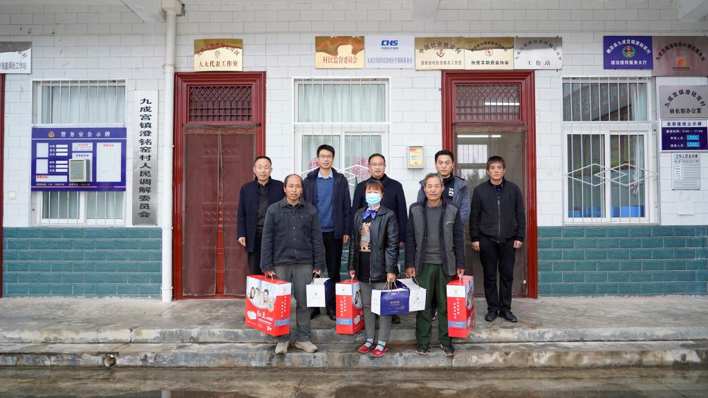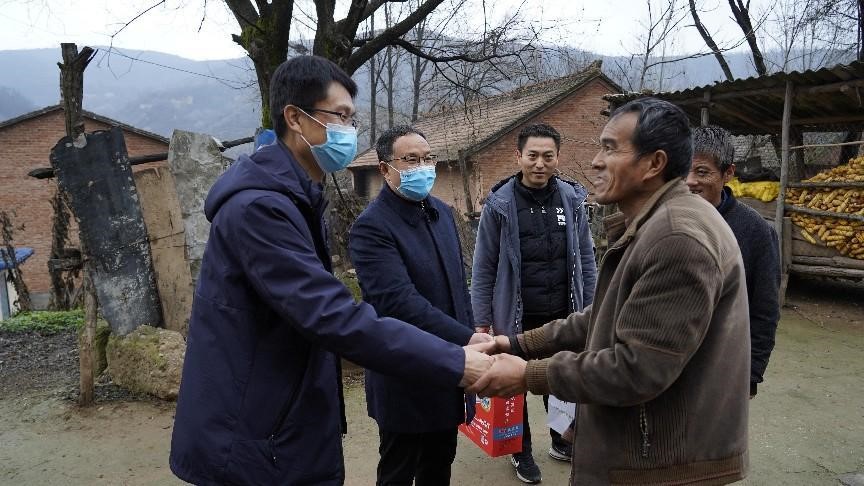 向纪明一行前往“两联一包”帮扶村麟游县九成宫镇澄铭窑村看望困难家庭,并带去了电热毯等慰问品。