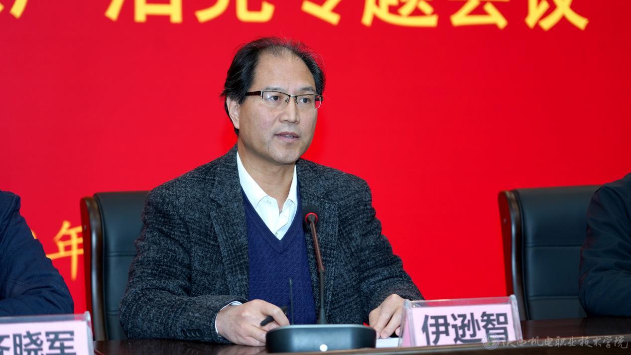 就做好2023年全面从严治党工作,伊逊智强调了五点:一是坚持政治统领。要坚持把学习贯彻习近平总书记的重要讲话重要指示批示精神作为重要政治任务,在学思践悟中不断提高政治判断力、政治领悟力、政治执行力,确保学校教育教学工作始终沿着正确方向前行;二是强化思想引领。要把学习宣传贯彻党的二十大精神作为当前和今后一个时期首要政治任务,学懂弄通领悟习近平新时代中国特色社会主义思想和党的二十大精神的世界观、方法论,在推动学校事业高质量发展上想实招、出硬招、有新招;三是夯实基层组织。要落实高校基层组织工作条例,充分发挥党委“龙头”、支部“堡垒”、党员“先锋”作用,压实党支部党建主体责任,提升党支部政治功能和组织功能,以高质量党建引领学校各项工作高质量发展;四是持续改进作风。要抓好干部作风能力提升年活动,增强转变作风的自觉性、主动性,把“勤快严实精细廉”作风落实在岗位上、工作中,不断把新时代陕西机电职院各项工作推向前进;五是严明党的纪律。要切实履行从严从实管党治校政治责任,认真落实“一岗双责”,持续推进清廉学校建设、作风建设和师生群众反映强烈的突出问题专项整治,以严的主基调持续正风肃纪,以“零容忍”态度惩治腐败,营造风清气正的校园政治生态和发展氛围。