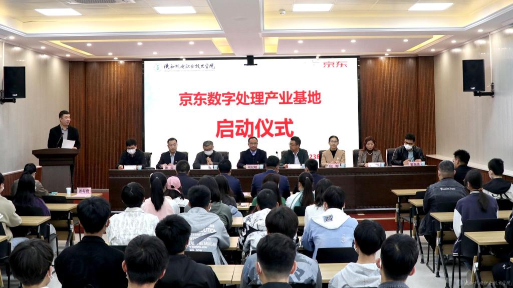 3月14日下午,买球赛的app官网“京东数字处理产业基地”启动仪式在买球赛的app官网蟠龙校区成功举行。参加本次启动仪式的政府代表有宝鸡市数字经济局副局长任海成、宝鸡市经济合作局二级巡视员索双海;企业代表有京东校园馆运营中心总经理万昌昌、京东校企合作大区经理郭洲丞、京东区域运营公司代表周通。学校党委副书记、院长向纪明、党委副书记张琴、党委委员、副院长张克、教务处、招生就业处、校企合作处及电子与信息学院等部门主要负责人参加了本次启动仪式。仪式由电子与信息学院院长姜有奇主持。
