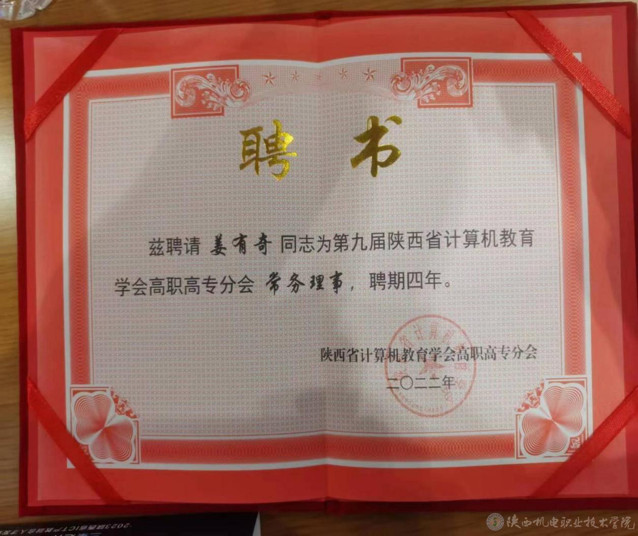 论坛期间,为陕西省计算机教育学会高职高专分会理事颁发了聘书,张克被聘为副理事长,姜有奇被聘为常务理事。