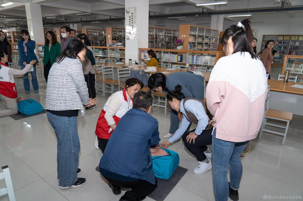 为提高全院教职员工在突发事件中的自救互救能力,争取生命“黄金4分钟”,我院培训处特邀陕西职业技术学院白鹿原急救教育学院专家,于4月12日下午在我校蟠龙校区图书馆举办了一场应急救护知识普及和救护技能培训活动,参与培训活动学员共计60余人。