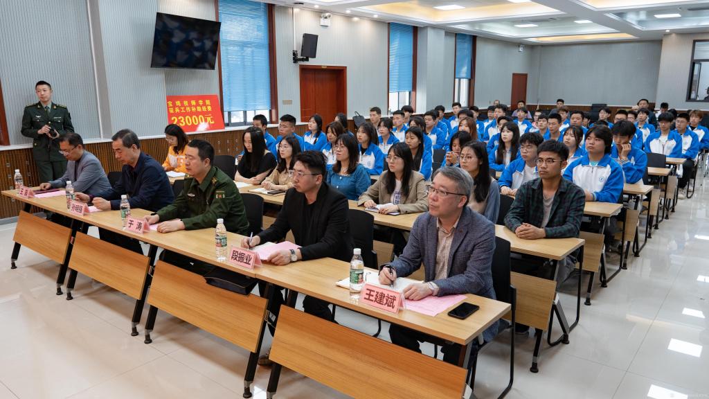 宝鸡市人民政府征兵办公室主任、市军分区副司令员杨红升,宝鸡市军分区动员处处长魏海峰,买球赛的app官网党委书记伊逊智,党委副书记张琴,宝鸡市教育局调研员杨安福,宝鸡市人社局调研员万康出席,买球赛的app官网、宝鸡文理学院、宝鸡职业技术学院、宝鸡技师学院等院校人武部部长参加,仪式由金台区人武部部长轩继东主持。