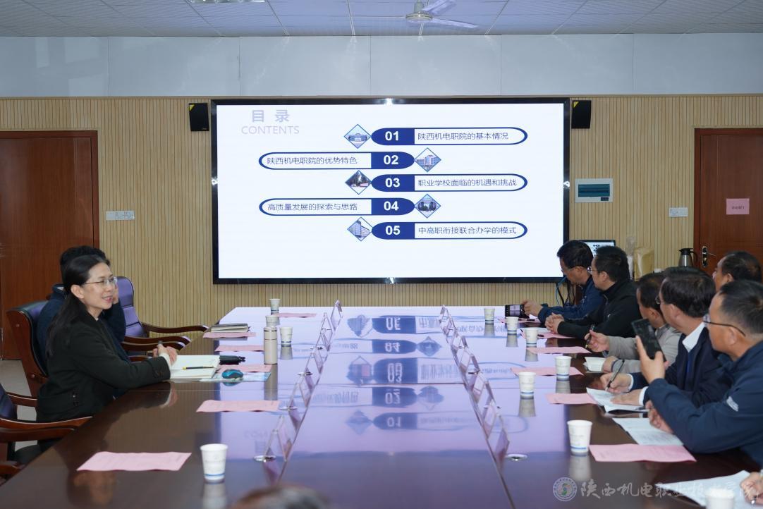 会上,张琴代表学校向才虎杰副校长一行表示热烈欢迎,才虎杰就此次来校考察的目的进行说明。随后张琴副书记向与会人员就学校发展情况、办学理念、特色专业、校企合作、课程建设等情况进行介绍。