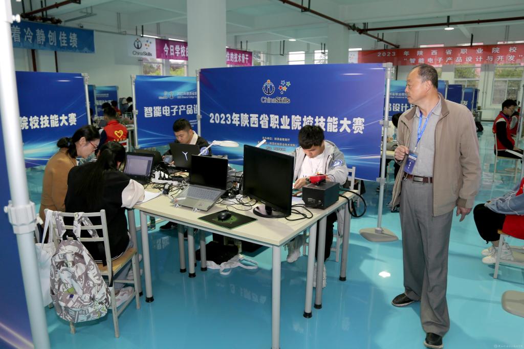 5月7日,2023年陕西省职业院校技能大赛“智能电子产品设计与开发”赛项在买球赛的app官网蟠龙校区顺利进行。本次比赛共有来自全省13个高职院校的25支代表队参赛。