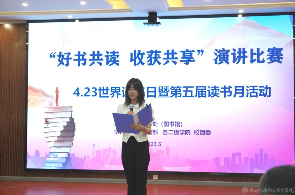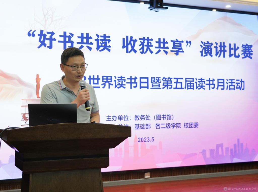为深入开展学习贯彻习近平新时代中国特色社会主义思想主题教育,落实党的二十大关于深化全民阅读活动的重要部署推动我校学生阅读深入开展。5月18日下午,在蟠龙校区博学楼111会议室举办了4.23世界读书日暨我校第五届读书月之“好书共读,收获共享”演讲比赛。