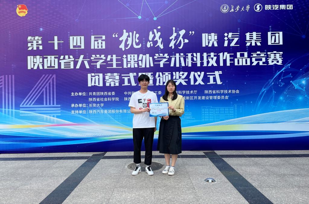5月20日下午,第十四届“挑战杯”陕汽集团陕西省大学生课外学术科技作品竞赛在长安大学圆满闭幕。我校参赛作品《初中生成就目标与学习投入之间的关系研究》荣获大赛“二等奖”。