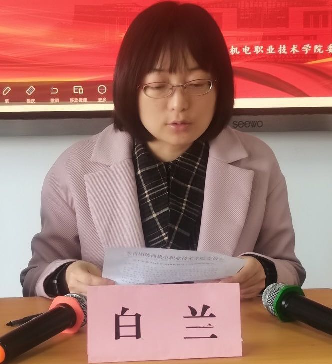(智能制造学院团总支书记白兰宣读关于举办2023年入团积极分子培训班的通知