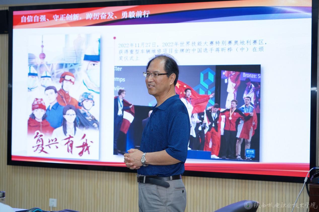 为进一步学习宣传贯彻党的二十大精神,扎实有序推进学习贯彻习近平新时代中国特色社会主义思想主题教育走深走实。2023年6月27日,党委书记伊逊智在蟠龙校区图书馆二楼会议室为行政党支部、宣传纪监党支部、人事处党支部、发展规划处党支部、财务资产党支部讲授题为《立志复兴伟业踔厉奋发前行》的专题党课。