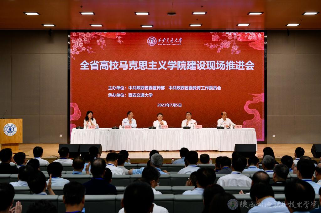 为深入学习贯彻习近平新时代中国特色社会主义思想和党的二十大精神,认真贯彻落实中央《关于加强新时代马克思主义学院建设的意见》精神,推动我省马克思主义学院高质量发展,7月5日下午,全省高校马克思主义学院建设现场推进会在西安交通大学创新港校区召开。省委常委、省委宣传部部长孙大光、西安交通大学党委书记卢建军、省委教育工委书记刘建林、省委宣传部副部长单红以及全省各高校党委主要负责同志出席会议,会议由省委宣传部常务副部长鲍永能主持。我校党委副书记、纪委书记陈红梅、马克思主义学院负责人王康参加了此次会议。