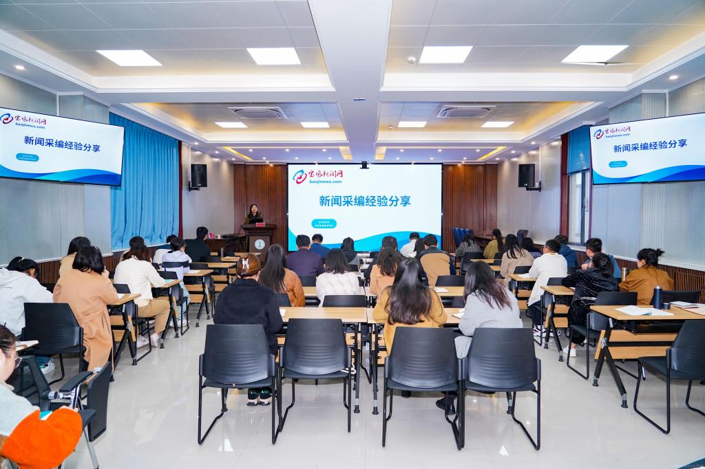 学校特邀宝鸡新闻网全媒体编辑李雪彤作了题为《新闻采编经验分享》的专题讲座,她从新闻写作、微信编辑、热点跟随、校园舆情的应急处理等四个方面为通讯员、信息员进行分享。