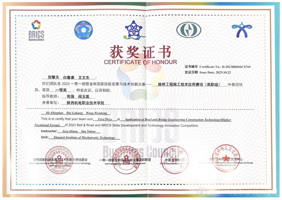 10月20—22日2023第七届一带一路暨金砖国家技能发展与技术创新大赛之路桥工程施工技术应用技能竞赛决赛在陕西交通职业技术学院成功举办。