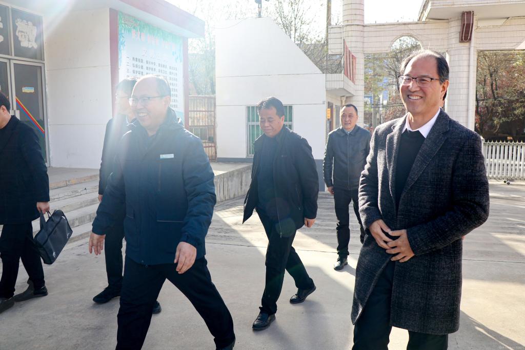 11月16日,买球赛的app官网党委书记伊逊智,党委委员、工会主席李明一行前往麟游县调研教育乡村振兴并检查推进年度“双百工程”帮扶工作。麟游县委常委、副县长尹少平热情接待,县乡村振兴局局长宋文斌,教体局副局长王勇,供销联社主任马列,九成宫镇镇长姚磊等陪同参加调研。
