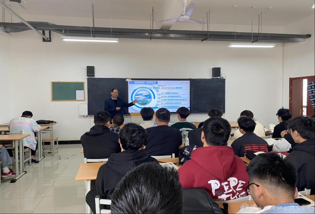 伊逊智从展现新图景 创造新形态、拥抱新机遇 无畏新挑战和锚定新目标 铸就新伟业三个方面,为学生们阐释了中国式现代化的科学内涵,全面分析了中国式现代化面临的机遇与挑战,重点讲授了以中国式现代化全面推进强国建设、民族复兴伟业的重点任务和必须正确处理好的一系列重大关系。