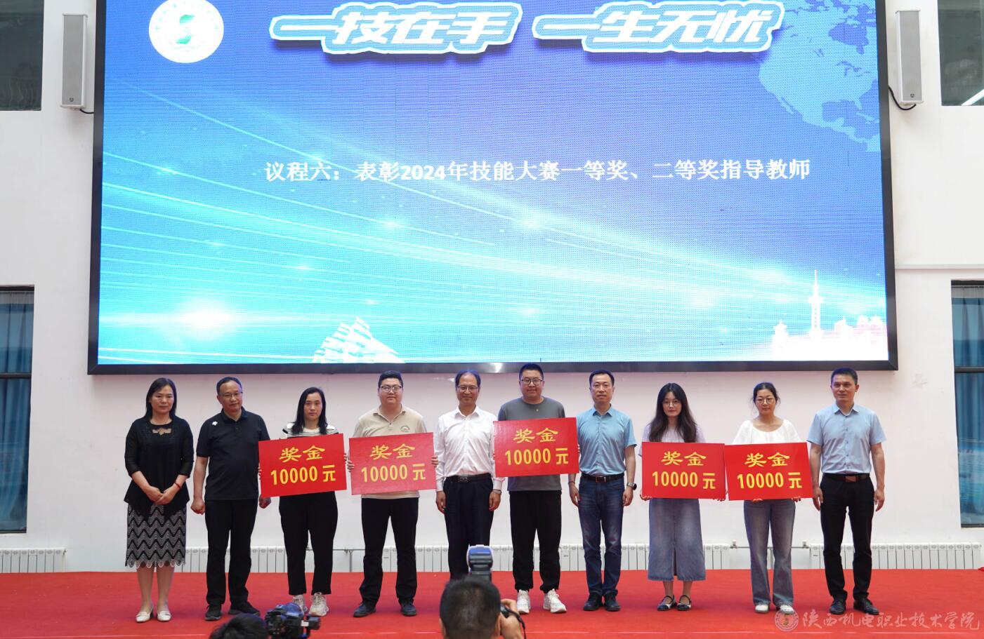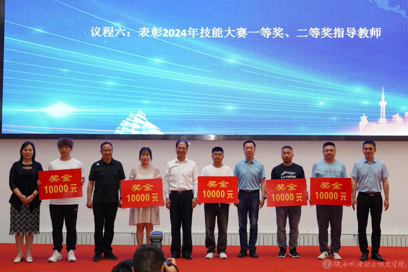 与会人员集中观看了我校第七届全国高校大学生讲思政课公开课展示活动高职组一等奖作品《传承红色基因 筑起铁路脊梁》,汲取了中国铁路追赶超越的非凡战绩和中国铁建人匠心独运、以身报国的精神风貌,坚定了听党话、跟党走的目标和信心。并对我校2024年陕西省职业院校技能大赛一等奖、二等奖获奖教师进行了表彰。