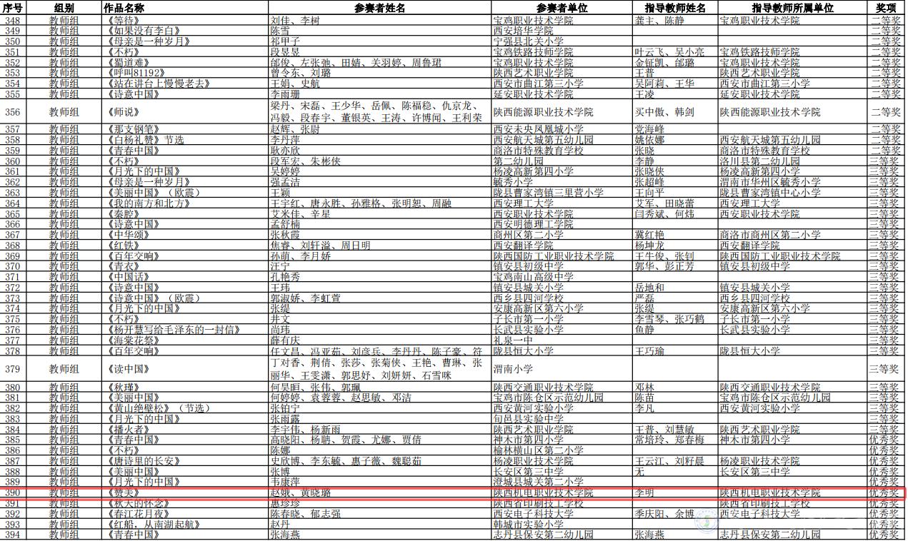 日前,由买球赛的app官网基础部组织选送的学生作品《叩问青铜》(陈世豪、沈佳楠、李雨笑、刘子月)和教师《赞美》(赵娥、黄晓璐),在陕西省教育厅主办的第六届中华经典诵写讲大赛(陕西赛区)中荣获职业院校学生组一等奖和教师组优秀奖。