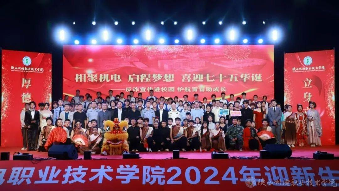 9月26日和27日,买球赛的app官网联合宝鸡市公安局、宝鸡市人社局、中共宝鸡市委网信办、共青团宝鸡市委、中国人民银行宝鸡市分行、宝鸡市公安局金台分局、招商银行宝鸡分行、海通证券股份有限公司宝鸡经二路证劵营业部隆重举办了2024年“相聚机电 启程梦想 喜迎七十五华诞 反诈宣传进校园 护航青春助成长”主题迎新晚会。活动以“线下宣讲+线上直播”的方式,为4000余名在校学生送出了一份特别的开学礼。