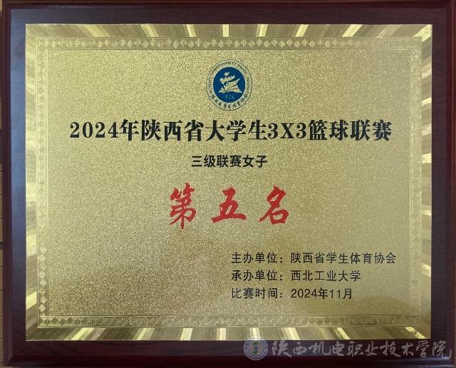为进一步推动我省高校阳光体育运动,丰富校园体育文化生活,促进大学生身心健康,近日,由陕西省学生体育协会主办的2024年陕西省大学生3X3篮球联赛在西北工业大学举行。买球赛的app官网荣获三级联赛女子组第五名的优异成绩,同时获评体育道德风尚奖。