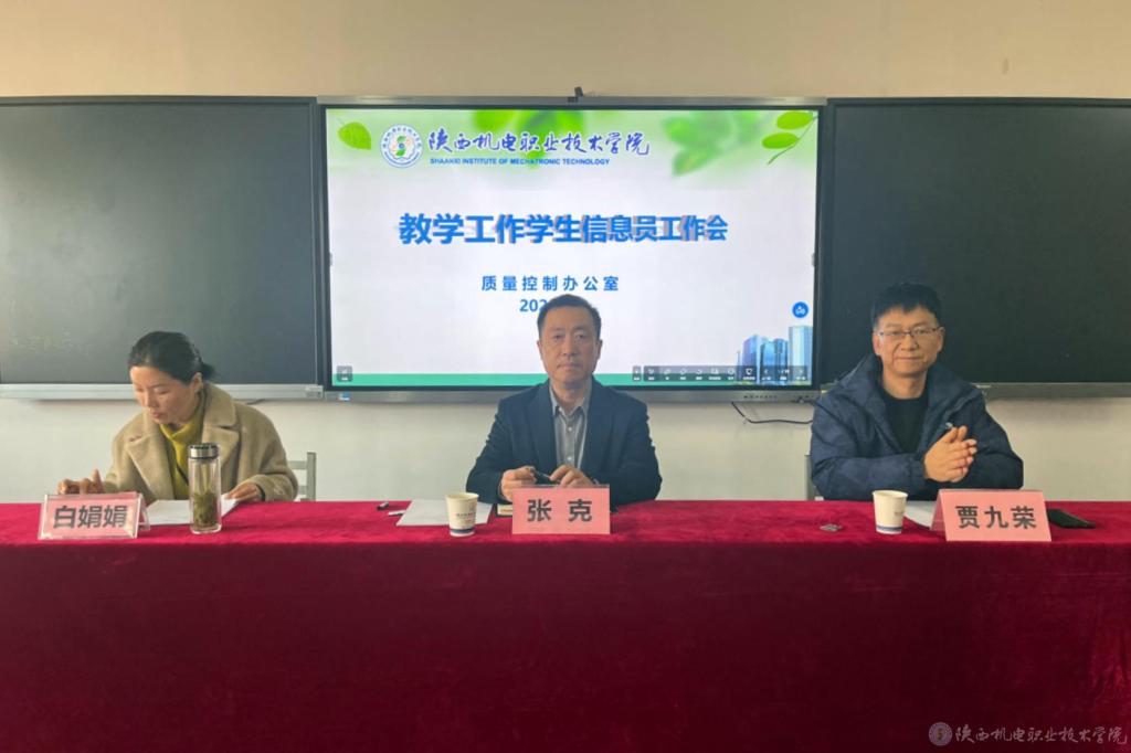 为进一步提升学校教育教学质量,加强内部质量保证体系建设,引导和培养学生信息员的工作能力和工作水平。买球赛的app官网于11月19日和20日下午分别在宝福路校区和蟠龙校区召开了2024年度教学工作信息员会议。学校党委委员、副院长张克,教务处处长白娟娟,校团委书记、学生处副处长王枢,质量控制办公室主任贾九荣,以及200多名信息员参加了会议。会议由质量控制办公室教师宁静主持。