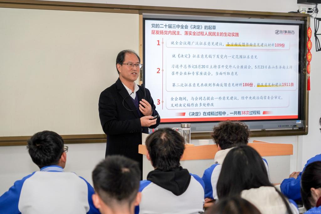 课上,伊逊智详细阐述了党的二十届三中全会对进一步全面深化改革、推进中国式现代化的总体部署,特别是在教育、科技、人才、经济体制、政治体制、文化体制、社会体制、生态文明体制、国防和军队改革等方面的最新举措。他强调,这些改革举措不仅为新时代中国特色社会主义事业提供了强大动力,也为青年大学生的成长成才创造了更加广阔的空间。青年大学生要树立正确的世界观、人生观、价值观,积极投身改革实践,为国家的繁荣富强贡献自己的智慧和力量。