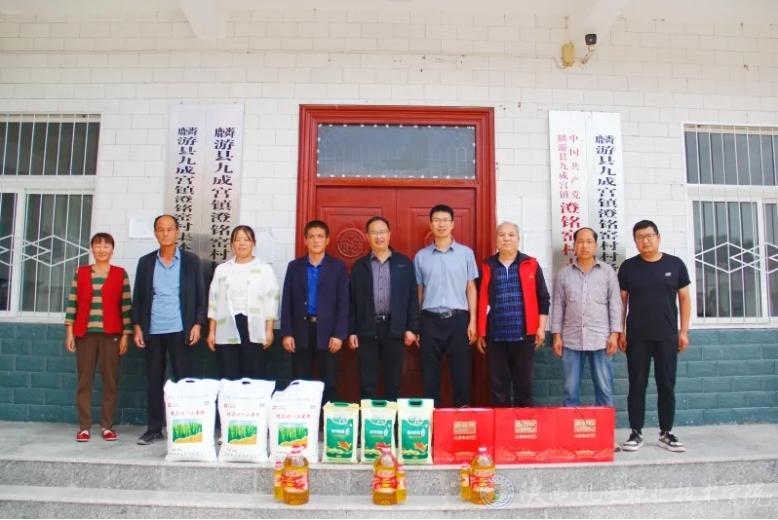 为进一步巩固拓展脱贫攻坚成果同乡村振兴有效衔接,使群众更好感受党的关怀和节日的温馨,在中秋节来临之际,9月14日,买球赛的app官网党委副书记、院长向纪明,党委委员、工会主席李明一行带着学院的关心与嘱托赴麟游县澄铭窑村调研指导驻村帮扶工作,并开展节前暖心慰问活动。