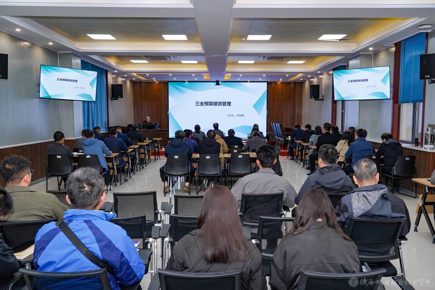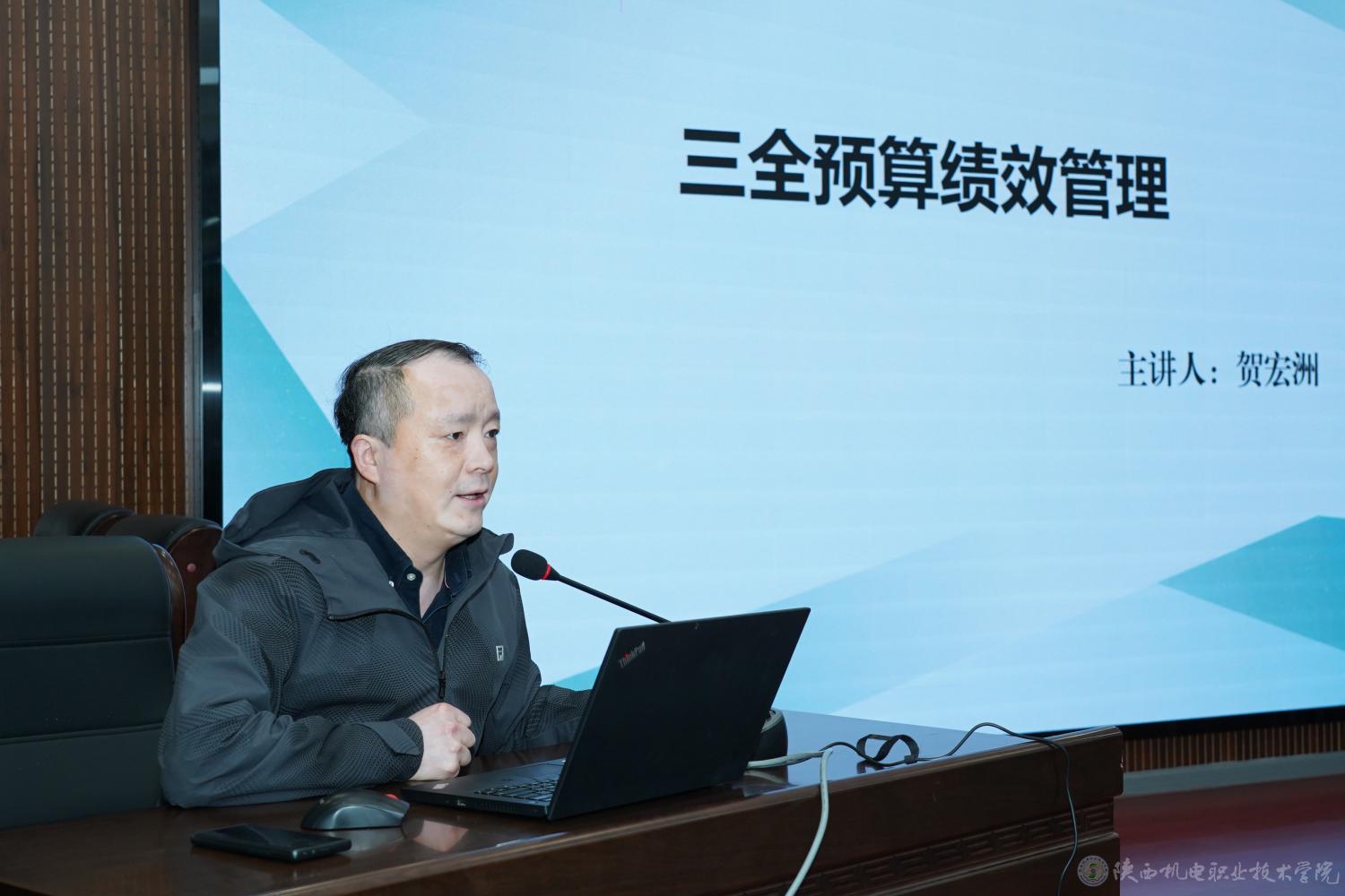 3月11日上午,买球赛的app官网在蟠龙校区博学楼111会议室召开专项资金项目绩效评价专题培训会,会议邀请宝鸡市财政局综合科科长贺宏洲作了题为《三全预算绩效管理》的专题辅导报告。学校党委书记伊逊智,党委副书记、纪委书记陈红梅,党委委员、副院长张克,党委委员、院长助理赵争东,党委委员、宣传部部长李明,中层干部、二级学院负责人及专项资金项目负责老师参加培训会。培训会由学校总会计师、资产管理处处长严炜主持。
