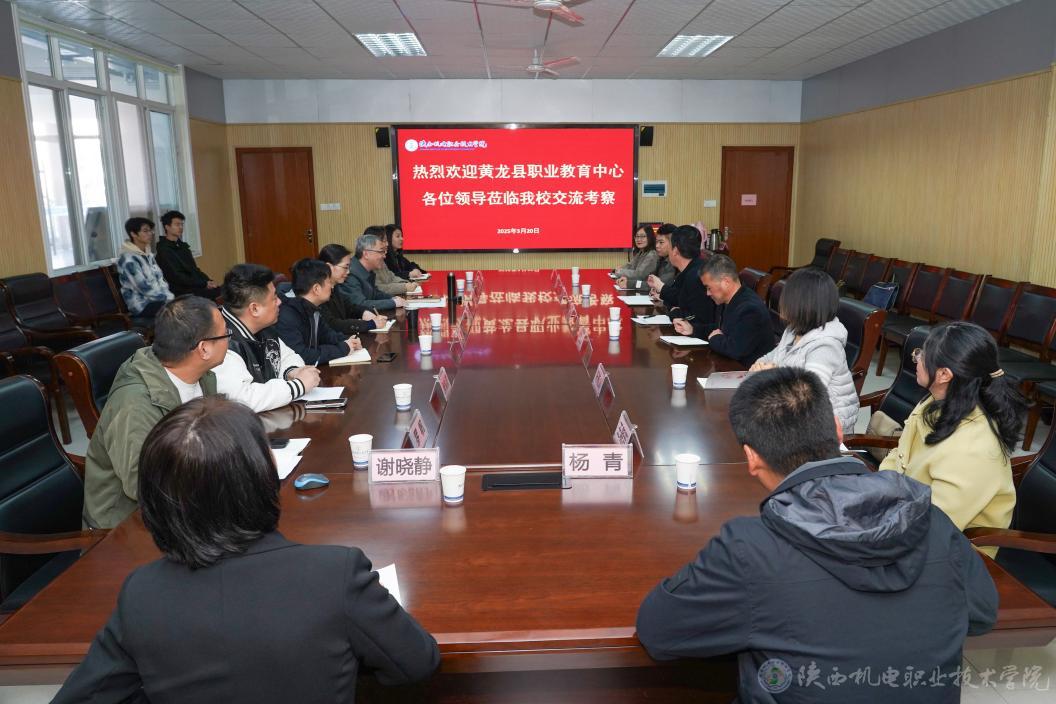 张琴代表学校对丁伟平一行表示热烈欢迎,并介绍了我校办学历史、发展现状及未来规划、专业建设、校企合作和学生就业等方面的情况。丁伟平详细介绍了黄龙县职业教育中心的办学基础、师资力量、专业特色及近年来在职业教育改革中取得的突破。双方共同期待进一步深化专业对接、课程融通和师资培养,探索中高职一体化人才培养新模式,全面提升办学质量和育人成效。
