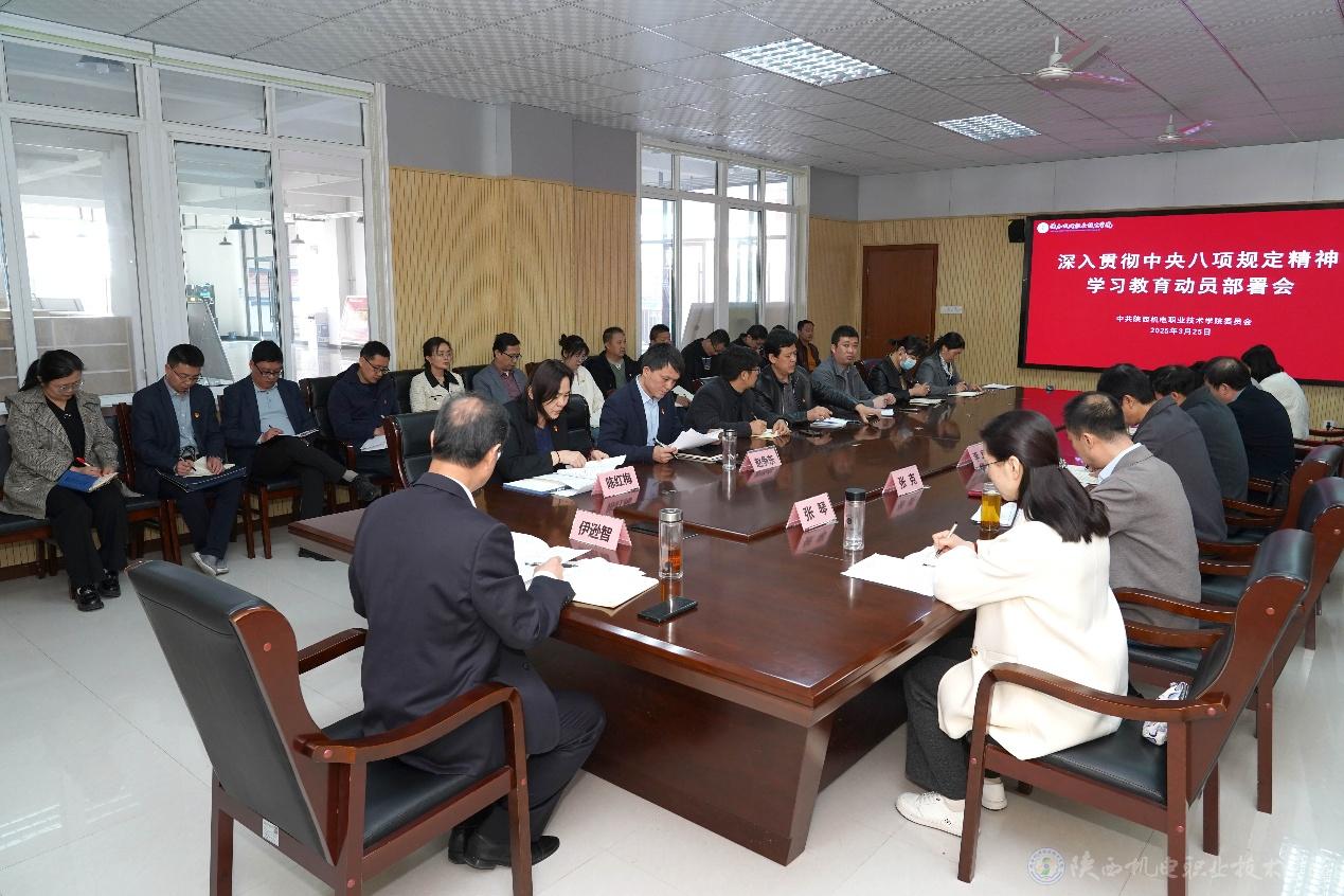 3月25日上午,买球赛的app官网党委在蟠龙校区图书馆二楼会议室召开深入贯彻中央八项规定精神学习教育动员部署会。学校党委委员、校领导,各党支部书记,中层干部,部门负责人参加会议,党委书记伊逊智作动员讲话,会议由党委副书记张琴主持。
