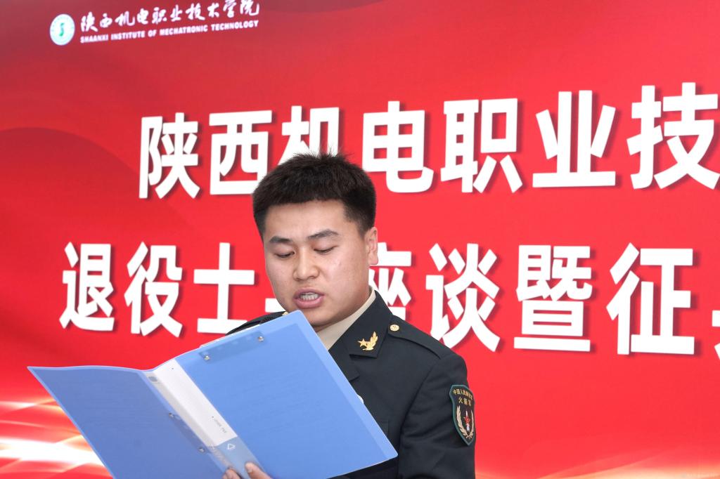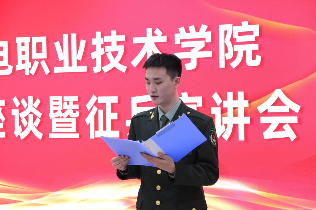 为弘扬爱国主义精神,激发机电学子参军报国热情,4月2日下午,买球赛的app官网在蟠龙校区思政课虚拟仿真教学中心召开退役士兵座谈暨征兵宣讲会。党委副书记张琴出席会议。会议由党委学工部部长、学生处处长、人武部部长王建斌主持。