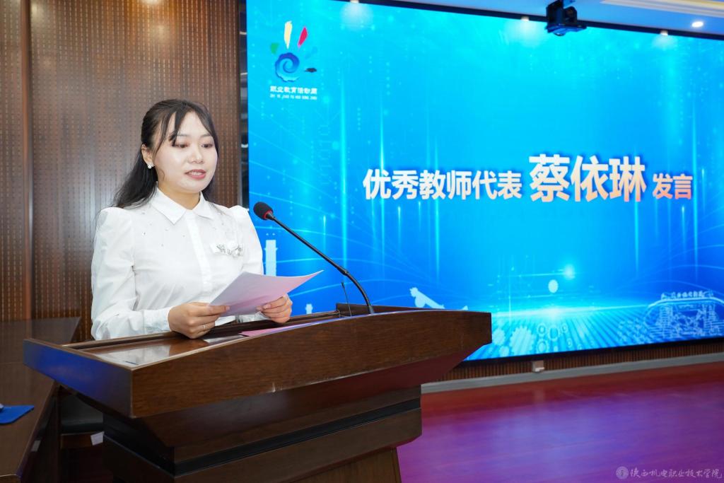 数字经管学院教师代表蔡依琳详细分享了自己指导学生备赛企业经营沙盘模拟赛项的经验,将“执着专注、精益求精”的工匠精神融入日常教学和技能大赛,形成“以赛促教、以赛促学、以赛促改”的良性循环。