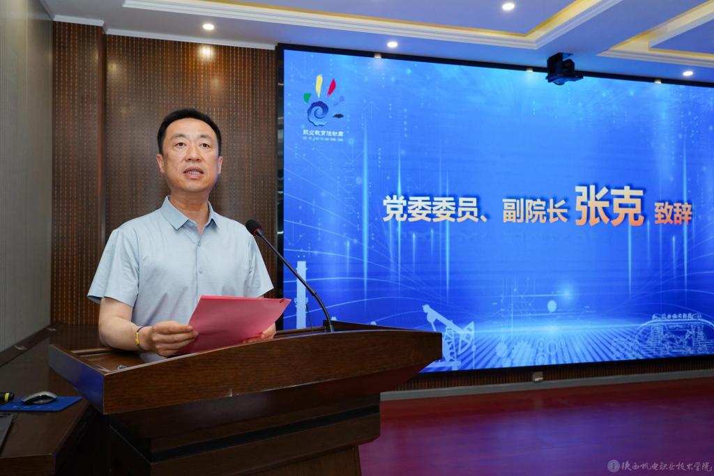 张克在致辞中强调,职业教育是服务区域经济转型升级的“关键引擎”。他指出,学校始终以“产教融合、校企合作”为核心,通过技能大赛和活动周平台,推动人才培养与产业需求精准对接,为“中国智造”输送高素质技术技能人才。