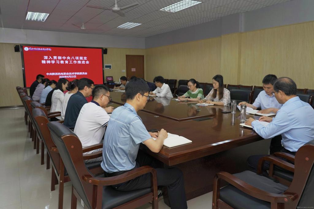 会上,伊逊智传达了《全省深入贯彻中央八项规定精神学习教育工作推进会》《赵一德在省委党的建设工作领导小组会议上强调坚持问题导向和严的标准 持续推动学习教育走深走实》会议精神;赵争东领学了《中共陕西省委教育工委转发中央党的建设工作领导小组关于印发党的十八大以来深入贯彻中央八项规定精神的成效和经验的通知》《中央党的建设工作领导小组关于印发〈党的十八大以来深入贯彻中央八项规定精神的成效和经验〉的通知》及《纪言:八项规定改变中国》理论文章;伊逊智对前期学习教育开展情况进行总结并安排部署下一步工作。