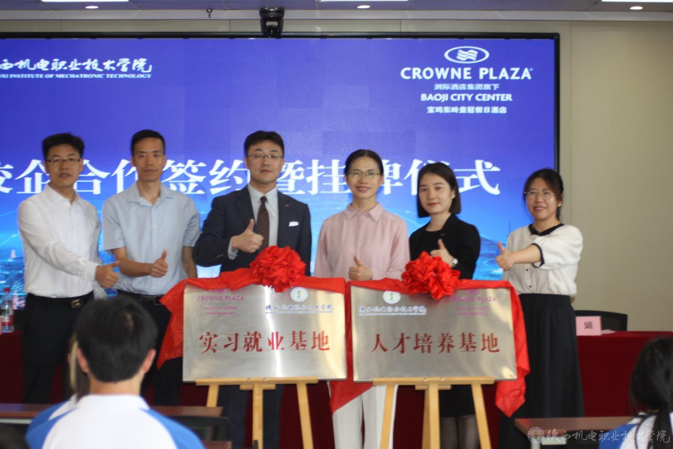 接着,张琴和赵巍为买球赛的app官网在宝鸡东岭皇冠假日酒店的“就业实习基地”和宝鸡东岭皇冠假日酒店在买球赛的app官网的“人才培养基地”揭牌,并进行校企合作签约仪式。