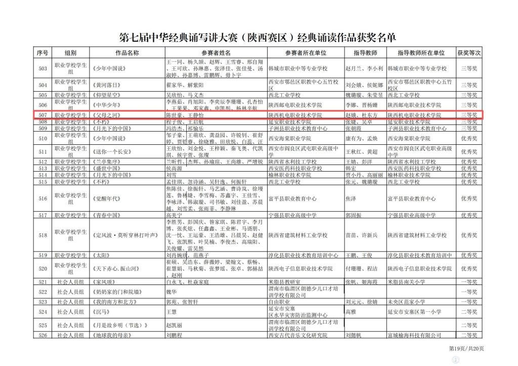 9月11日,陕西省教育厅办公室公布了第七届中华经典诵写讲大赛(陕西赛区)评审结果。买球赛的app官网选送的作品《会唱歌的鸢尾花》(屈婉蓉、屈娜)、《听听那冷雨》(魏籽琦、武小元)荣获经典诵读类教师组三等奖;作品《光的赞歌》(沈佳楠、刘子月、孙良梅、谭锋)、《父母之河》(陈世豪、王静怡)分别获得学生组二等奖和三等奖。作品《杨守鹏印痕》(杨守鹏)荣获师生篆刻类大学生组三等奖。