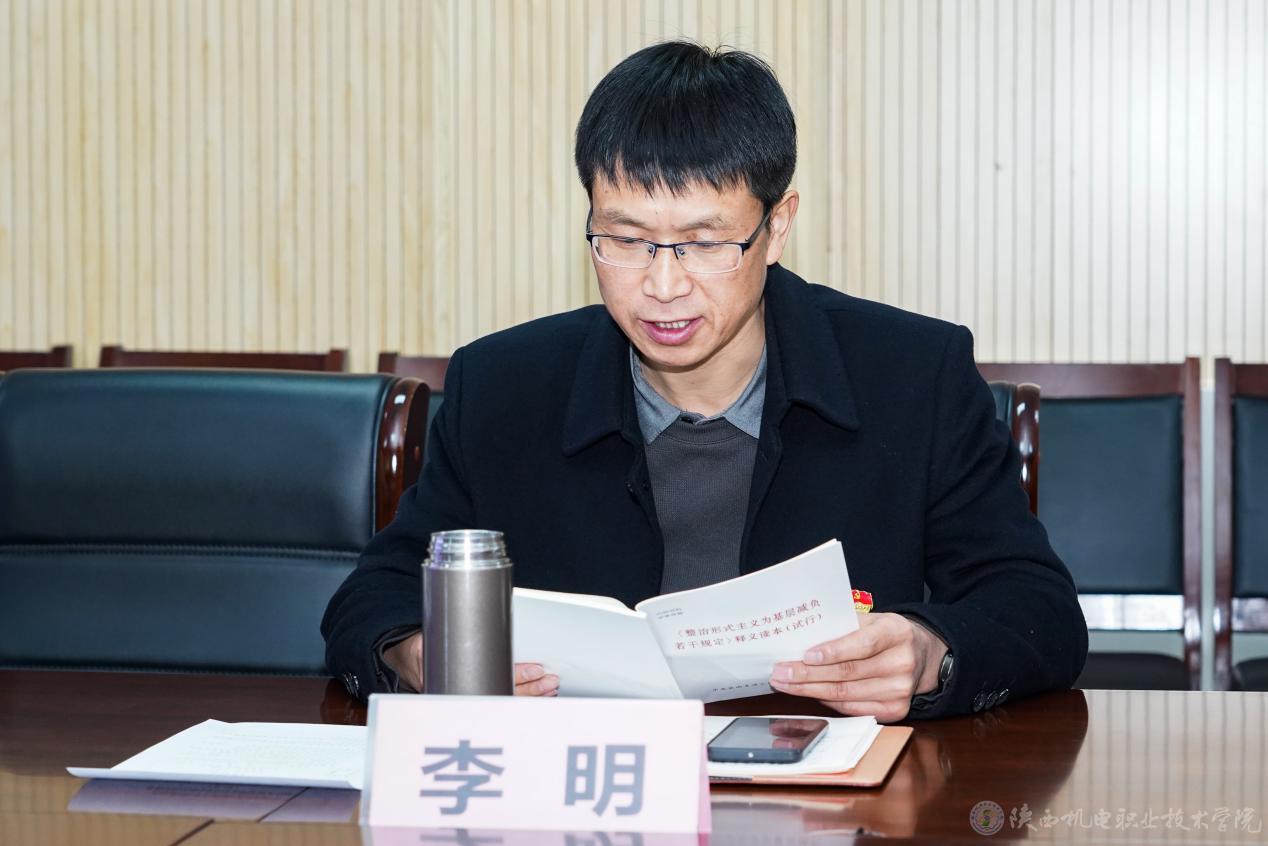会上,集中学习了中国共产党第二十届中央委员会第四次全体会议公报、省委常委会扩大会议精神。伊逊智领学《习近平谈治国理政》第五卷《朝着建成教育强国目标扎实迈进》;党委副书记、校长侯晓方传达全省职业教育大会精神;党委副书记、纪委书记陈红梅作教育领域警示教育;党委委员、宣传部部长李明领学《整治形式主义为基层减负若干规定》相关内容。