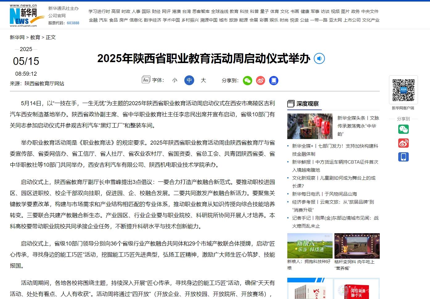 【新华网】2025年陕西省职业教育活动周启动仪式举办